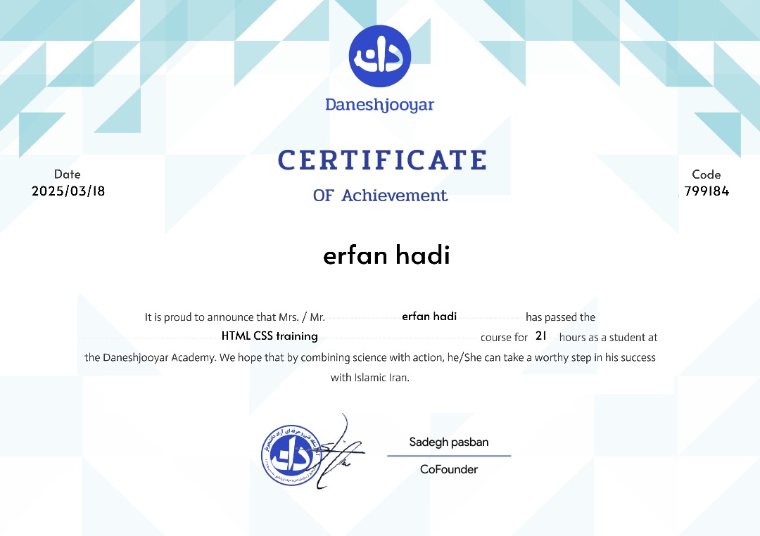 Hello, I'm Erfan hadi 👋